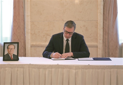 12月3日,塞尔维亚总统武契奇在中国驻塞尔维亚大使馆吊唁江泽民同志。 |