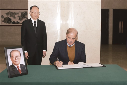12月1日,巴基斯坦总理夏巴兹在中国驻巴基斯坦大使馆吊唁江泽民同志。 |