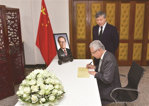 12月2日,毛里求斯总理贾格纳特在中国驻毛里求斯大使馆吊唁江泽民同志。 |