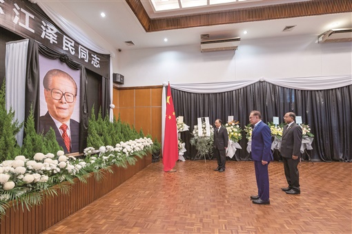 12月2日,毛里求斯总统鲁蓬在中国驻毛里求斯大使馆吊唁江泽民同志。 |