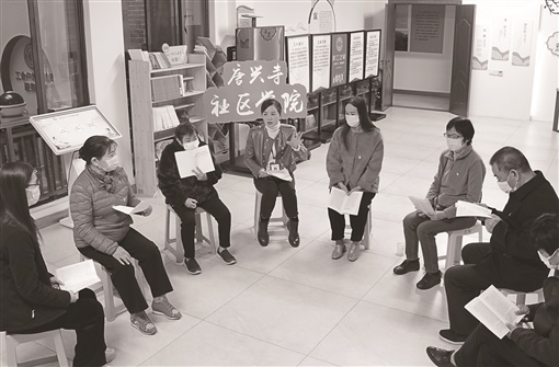 上午9时许,“唐兴寺社区学院”准时开课。10余名社区党员和群众围坐在一团,聆听粟娜宣讲党的二十大精神。大家边听边记,时不时抛出日常生活中的问题互动交流。