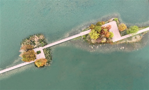 12月5日,洋湖国家湿地公园。进入冬季,该公园种植的乌桕、银杏、枫香把整个园区装扮得美不胜收。