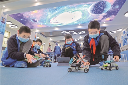 12月10日,东安县白牙市镇一小机器人社团的学生对机器人进行编程和操作。今年以来,该县通过建设智能机器人实验室、科技活动室和“机器人创客教室”,激发学生的创新意识,点燃科技梦想。