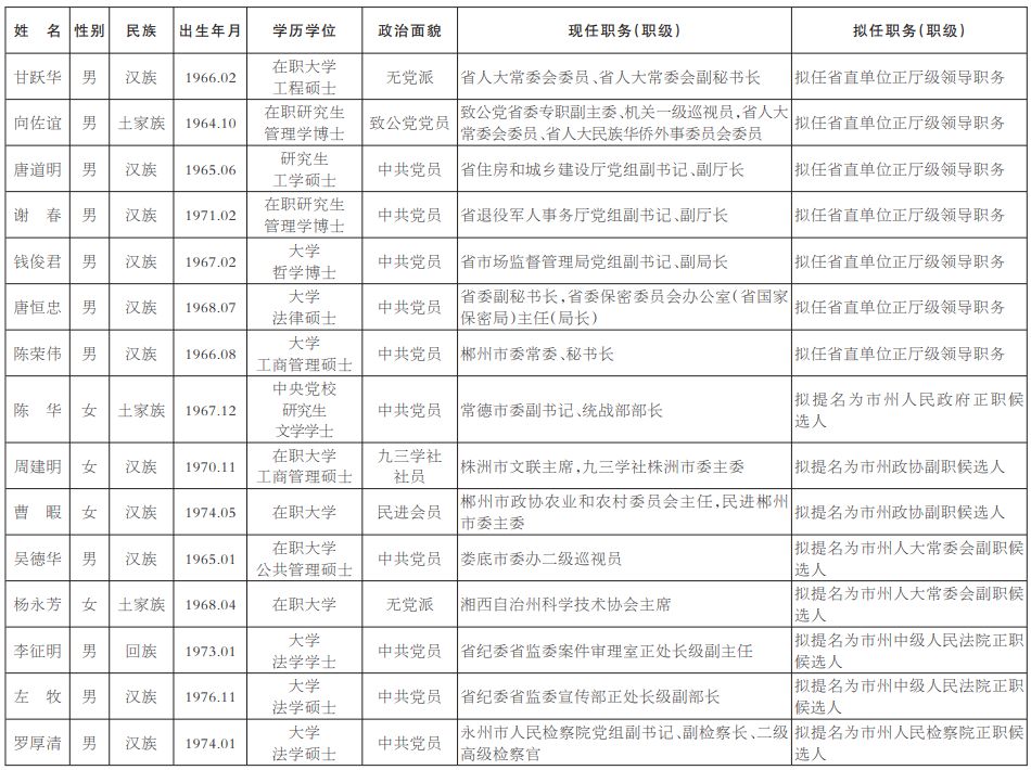 为了加强对干部选拔工作的监督,提高识别和任用干部的准确程度,现对省委常委会会议研究决定的下列拟任人选进行任前公示: