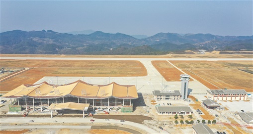 12月13日,湘西边城机场航站楼项目,建设者在抓紧进行装饰装修施工。该机场于2018年8月全面开工,设计目标年均旅客吞吐量30万人次、货邮吞吐量450吨。目前,机场飞行区项目已完成土石方工程等,力争今年12月底校飞,明年3月通航。