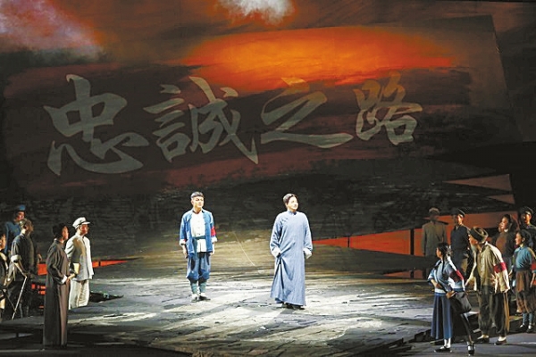 《忠诚之路》的事件多而不杂,对白精简生动,观众通过以往的生活阅历、知识储备参与角色塑造,这是戏曲写意性在现代戏创作中新的运用,既不同于西方戏剧的审美,又和中国传统戏曲的写意性不一样。西方戏剧更在意的是观众的真实体验感,更强调的是:在舞台上,要在角色的生活环境中,和角色完全一样正确地、合乎逻辑地、有序地、像活生生的人那样去思想、希望、祈求和动作……观众是“第四堵墙”的存在,窥探剧中人的生活。中国传统戏曲的写意性往往体现在通过一桌二椅、脸谱、水袖以及程式化的动作在表达场景、情绪、身份中的美学追求。而盛和煜是用大写意的、点到为止且惜墨如金的手法,营造出“和盘托出,不若使人想象于无穷”的意趣。