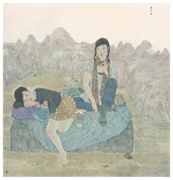 这次展览是她近十年来的创作,展现了她对工笔的研究与对写意的探索。玲子很勤奋,像地质勘探一样对研究对象进行深挖,以寻找工笔技法与精神内涵所能表达的可能性。《记忆》和《时光》系列作品她着重描绘对生命、亲情、人和自然的关系,清新质朴,并对社会发展与现代人的生活状态深入思索,画面延续了她以往画作中浪漫梦幻的气息。写意部分作品,她尝试将中国传统笔墨精神融入现代生活中,在传统精神与时代风貌中寻找一个恰当的表达。近些年的画作中,看得出玲子注重深入社会贴近生活,创作有了更多元的表现。如作品《三月》《新长沙窑》《早春》等,题材宽了,表达也厚重了。她从小我出发将自己放入社会与时间的长河里洗涤,文学、音乐、哲学都给予她滋养,激发她灵感。这些作品还只是她探索艺术中的阶段表现,艺无止境,长时间的实践与研究终会形成自己独特完整的面貌。