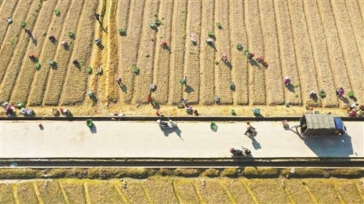 12月15日,新田县中山街道东升村,村民抢抓晴好天气移植蔬菜。近年,该村积极对接粤港澳大湾区“菜篮子”工程,通过“公司+基地+农户”形式,建成优质蔬菜供应基地,发展特色富硒绿色蔬菜产业,带动村民增收致富。
