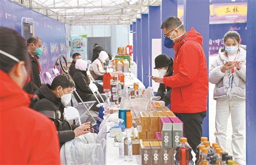 12月17日,市民在老字号企业展位选购心仪的商品。当天,为期3天的第三届“潇湘韵·中国风——老字号嘉年华”活动在长沙潮宗街历史文化街区水道巷举行。
