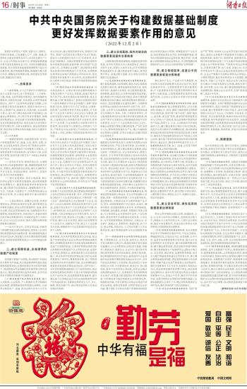 中共中央国务院关于构建数据基础制度 更好发挥数据要素作用的意见