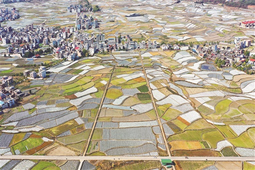 12月25日,临武县舜峰镇禾鱼村,田间的香芋被盖上薄膜,保鲜越冬。近年,该县做大做优香芋产业,采取“公司+合作社+家庭农场”发展模式,种植香芋达10万余亩,年产量超30万吨,产值达10亿元以上。