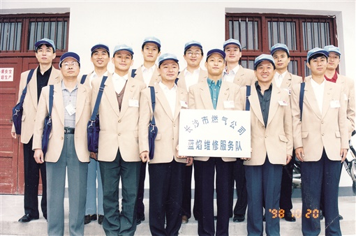 1998年10月20日,长沙市燃气公司“蓝焰维修服务队”正式挂牌成立,长燃人从此再也没有停下为民服务的脚步,他们秉承雷锋精神,坚持“一张名片、一双鞋套、一块垫布、一张价目表、一次安全宣传、一次温馨提示”的“六个一”服务标准,将温暖的力量传遍千家万户。