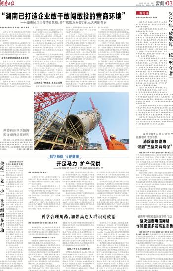 “湖南已打造企业敢干敢闯敢投的营商环境。”隋忠诚表示,新的一年,湖南省委、省政府将坚持以习近平新时代中国特色社会主义思想为指导,深入贯彻党的二十大精神,按照中央经济工作会议精神和省委十二届三次全会部署,坚持稳字当头、稳中求进,坚定不移落实“两个毫不动摇”,树牢“企业是经济发展的青山、党和政府是企业的靠山”理念,继续实施优质企业梯度培育行动、市场主体倍增工程,深入开展“纾困增效”专项行动,深化“五好园区”建设,扎实推进民营经济“六个一”工作,着力营造亲商、扶商、安商、富商的良好环境,以实际行动促进民营经济发展壮大,齐心协力建设现代化新湖南。