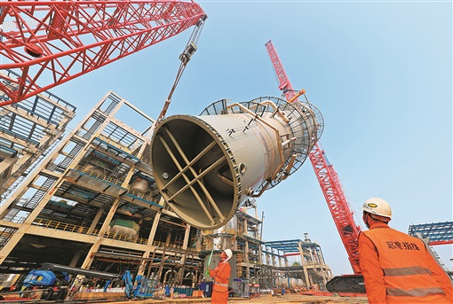 12月30日,工人在巴陵石化己内酰胺搬迁项目吊装双氧水装置氧化反应器。截至当天,该项目计划吊装的单台重百吨以上的大件设备完成吊装142台,占比超过82%,项目总体进度完成近90%。李翼骏 彭展 摄影报道
