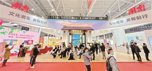 连日来,湖南展团以“文化湘军,勇毅前行”为主题,通过图文、实物、视频等多种手段和现场互动,立体展示湖南文化产业发展的新成就,人气和流量不断攀升。