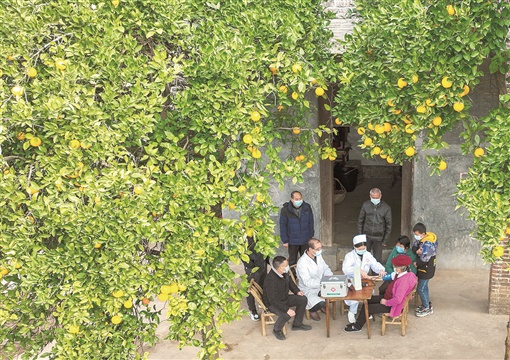 1月5日,常宁市庙前镇,医护人员上门为村民进行健康检查。近年,该市针对基层医疗卫生资源相对薄弱的情况,筹集常用药品,组织医护人员进村入户,免费为群众提供上门问诊、健康检查、配药送药等暖心服务,守护村民健康。周秀鱼春 摄