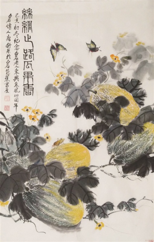 唐舒展专程来到新疆石河子,在西北的阳光下,蹲在瓜田里写生。她发现哈密瓜除有黄色和绿色外,那瓜皮上的纹路也不一样,有条纹和方纹之分。她向瓜农请教。瓜农告诉唐舒展,一般表面纹路排列细密的,摸在手里感觉很粗糙,这样的哈密瓜熟了肯定甜,摸上去表面光滑,纹路大的哈密瓜一定是不甜的。唐舒展几经揣摩,终于把哈密瓜的纹路画得似与不似之间,怎么看,色泽鲜美,纹路逼真,似是工笔描就,饱满诱人,看着犹如闻到瓜香。父亲见后不由高兴吟道:“当年曾吃新疆果,今日犹思塞外瓜。色香更有真滋味,娇容走入千万家。”
