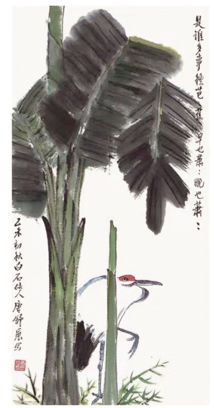 唐舒展从小就看见父亲如传家之宝般珍藏的这幅画,还在父亲收藏的齐白石画册中看到一幅《芭蕉书屋图》。她问父亲,才知齐白石“五出五归”去过广西。广西的芭蕉长得那么茂盛,才让齐白石留下这幅生机盎然的作品。她那时在心里想着,有机会要去看看齐白石画的芭蕉书屋。