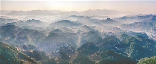 1月9日,龙山县民安街道大堰坪社区,峰峦叠嶂,晨雾飘逸,如一幅水墨丹青画卷。曾祥辉 摄