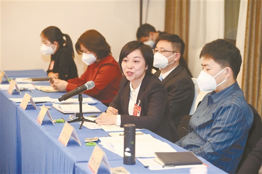 1月13日晚,何丽萍委员(前排右二)在小组讨论会上就如何坚定文化自信、做中华文化传播者建言。本版照片均为湖南日报全媒体记者 田超 摄