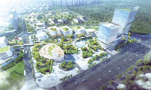 沐浴着暖阳,在建的规划展示馆裹着绿纱,在工人们与吊车、罐车等的推动下,快速“长高”,预计1月中旬,它就能揭开面纱,以俊秀的面目呈现在澄净的天空下。与此同时,研发、办公等6栋大楼也于2022年10月开工建设。