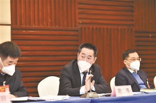 1月14日下午,陈令伟委员(中)在小组讨论会上,就加强多层次医疗保障体系建设发言。湖南日报全媒体记者 童迪 摄 |