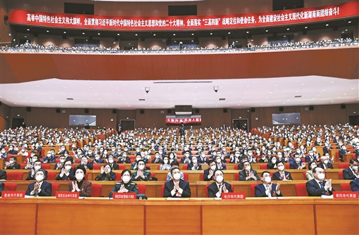 1月14日上午,与会代表在听取政府工作报告时热烈鼓掌。湖南日报全媒体记者 刘尚文 摄 |