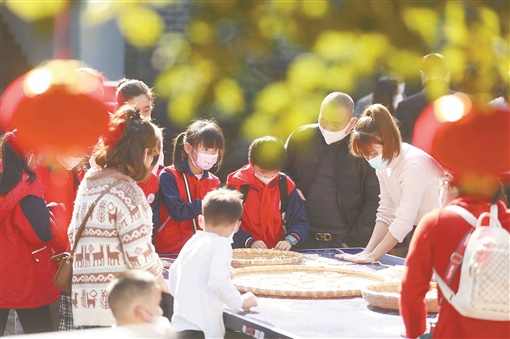 上图:1月13日,资兴市五岭农耕文明博物馆,工作人员指导学生手工制作套花。当天,该市开展迎新春年俗文化体验活动,50余名小学生走进农耕文明博物馆,学习体验做套花、抖糍粑、炸糕皮等春节习俗。