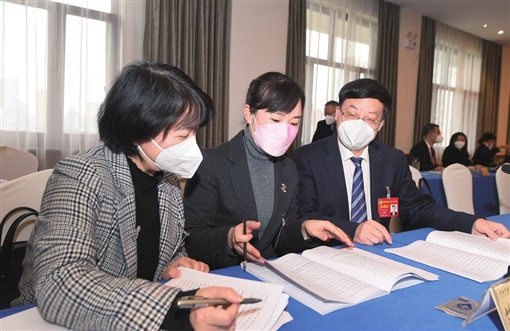 ▲1月16日,邹吉茂(右)、苏婵(中)、金姗姗(左)3位委员就“推动新材料产业高质量发展”“擦亮湖南旅游五张名片”“加快建设农业强省”等议题交换意见。 湖南日报全媒体记者 田超 摄 |