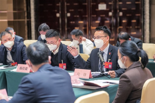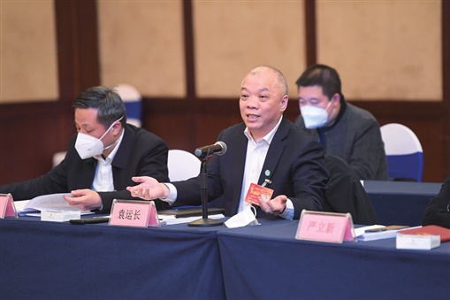 1月15日,株洲市代表团罗鹏程代表就产业助推工业高质量发展发言。 湖南日报全媒体记者 郭立亮 摄 |