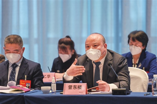 ▲1月15日上午,邵阳市代表团曾东楼代表就高质量推进经开区转型进行发言。 湖南日报全媒体记者 傅聪 摄 |