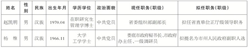 为了加强对干部选拔工作的监督,提高识别和任用干部的准确程度,现对省委常委会会议研究决定的下列拟任人选进行任前公示:
