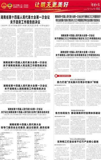 湖南省第十四届人民代表大会第一次会议关于湖南省2022年预算执行情况与2023年预算的决议
