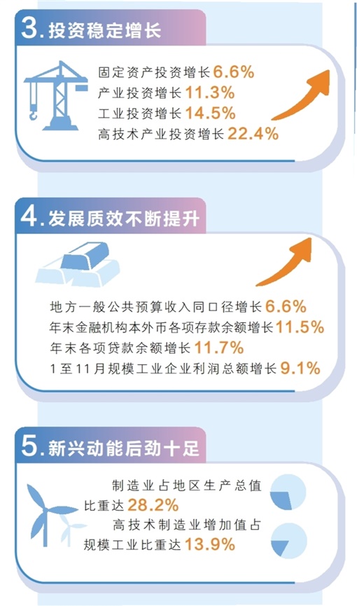 一季度GDP增速比全国快1.2个百分点,上半年比全国快1.8个百分点,前三季度比全国快1.8个百分点,全年比全国快1.5个百分点。