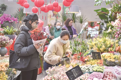 1月19日,长沙市三湘花卉市场都市花乡园艺中心,市民在选购鲜花绿植。春节临近,市民纷纷购买花卉作为节日装饰,长沙花市热闹,销售火爆。