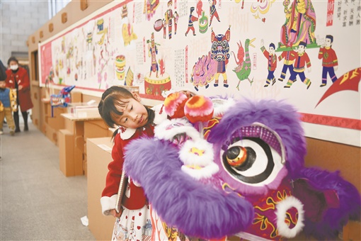 1月27日,湖南博物院,小朋友在参观舞狮头。春节假期,不少市民和游客选择到博物馆参观学习,体验文化大餐。