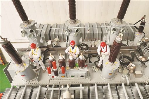 上图:1月28日,衡阳市特变电工衡阳变压器有限公司工人在进行打磨作业。当天,该公司全员到位上岗忙生产,全力保障福州-厦门1000kV特高压交流工程榕城站6台1000kV特高压电抗器的交付任务。