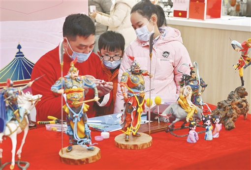 1月28日,湖南图书城内,市民在非遗面人、糖画小摊前驻足观看。春节期间,“湘书书香——过新年 读好书”全民阅读活动启动。活动集结了种类繁多的精品图书,融入猜灯谜、新春许愿等体验活动,让书香充满年味。