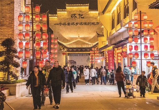 1月31日晚,游客在怀化市洪江古商城休闲游玩。春节以来,洪江古商城活动丰富,引得各方游客纷至沓来。田文国 摄