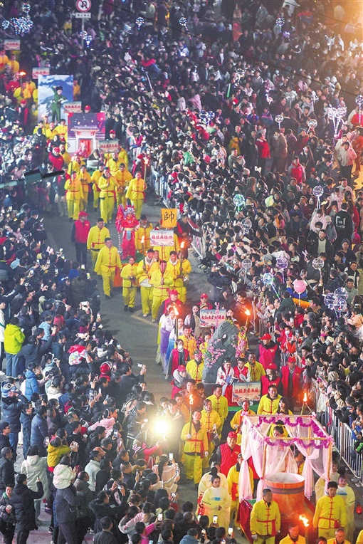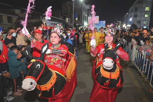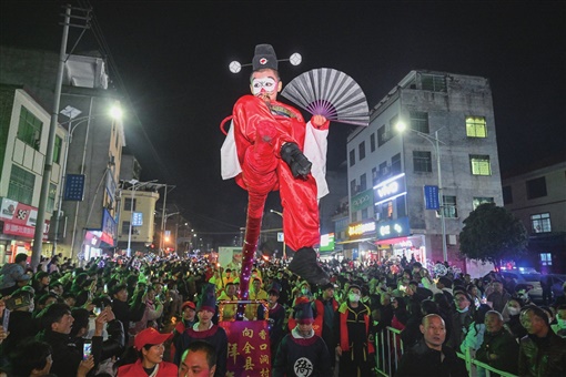 2月5日晚,在湘粤交界的宜章县一六镇,宜章“夜故事”巡游活动精彩上演,巡游队伍走到哪里,哪里就成了欢乐的海洋,不仅吸引了周边群众前来观演,不少外地游客也慕名而来。此次“夜故事”巡游活动由一六镇17个村1个社区和1个学校自发组织,共精选了19台“夜故事”,参演人员达600余人。