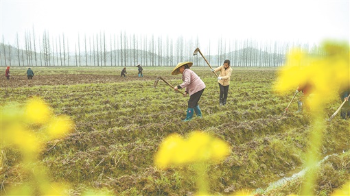 2月10日,常宁市三角塘镇长江村,农民在整理田地。早春时节,当地农民抢抓农时,有序投入农业生产,田间地头一派人勤春早的忙碌景象。 周秀鱼春 摄