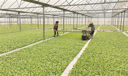 2月12日,江永县松柏瑶族乡烟苗大棚基地,村民在进行烟苗打叶作业。连日来,该县各地大棚种植户抢抓有利时机,开展耕地播种、育苗移栽、管理菜苗、修剪果树等农事活动。黄海 摄
