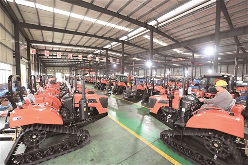 2月13日,郴州高新区湖南农夫电机有限公司,工人忙着生产农机产品。该企业生产的橡胶履带拖拉机、旋耕机等产品销往国内20多个省市,并出口非洲、南美洲、东南亚10多个国家和地区。曹高林 摄