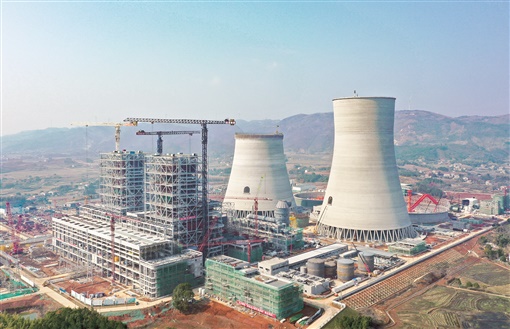 2月15日,华容县国能岳阳电厂项目施工现场。该项目是国家能源集团与湖南省战略合作的重点工程,规划建设4×1000兆瓦超超临界燃煤发电机组。目前,该项目提前23天完成1号排烟冷却塔结顶目标,迎来新年建设“开门红”。