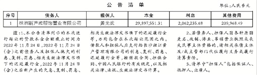 长沙湘江资产管理有限公司作为上述债权的受让方,现公告要求公告清单中所列债务人及担保人,从公告之日起立即向长沙湘江资产管理有限公司履行主债权合同及担保合同项下的全部义务或相应的担保责任。若债务人、担保人因各种原因发生包括但不限于更名、改制、歇业、吊销营业执照或丧失民事主体资格等情形的,由相关承债主体、清算主体代为履行义务或承担清算责任。