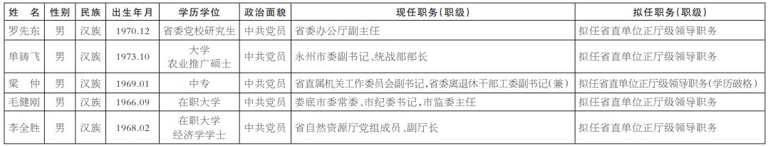 为了加强对干部选拔工作的监督,提高识别和任用干部的准确程度,现对省委常委会会议研究决定的下列拟任人选进行任前公示: