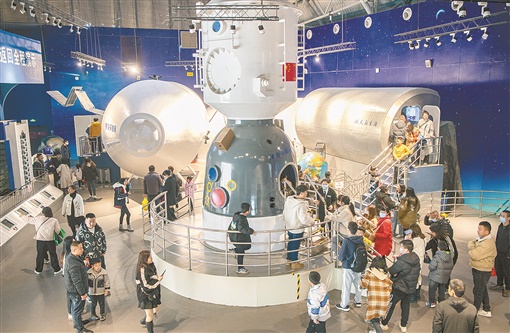 2月19日,湖南省科学技术馆,家长带着孩子学习科学知识。为丰富学生的课余生活,该科技馆开展系列科普展示,让孩子们充分感受科技的魅力。