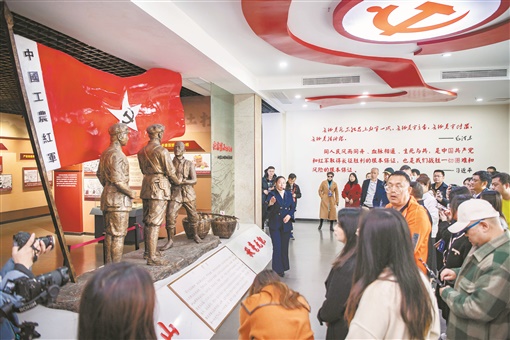 2月22日,桂阳县夜宿梨山红色教育基地,讲解员在为前来参观的人员讲述“夜宿梨山,秋毫无犯”的故事。