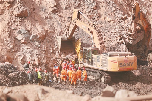 图为内蒙古自治区消防救援总队指战员在事故现场实施救援。新华社发
