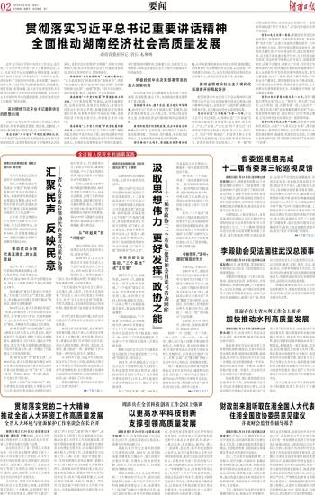 贯彻落实习近平总书记重要讲话精神 全面推动湖南经济社会高质量发展